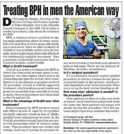 Expert BPH Treatment in Chandigarh . Benign means “not cancer,” and hyperplasia means too much growth. The result is that the prostate becomes enlarged. BPH is not linked to cancer and does not raise your chances of getting prostate cancer–yet the symptoms for BPH and prostate cancer can be similar. Welcome to Prostate Cure, your premier destination for comprehensive BPH treatment in Chandigarh. At Prostate Cure, we specialize in diagnosing and treating Benign Prostatic Hyperplasia (BPH), a common condition that affects many men as they age. Our state-of-the-art facility and expert team are dedicated to providing top-notch care tailored to your individual needs.